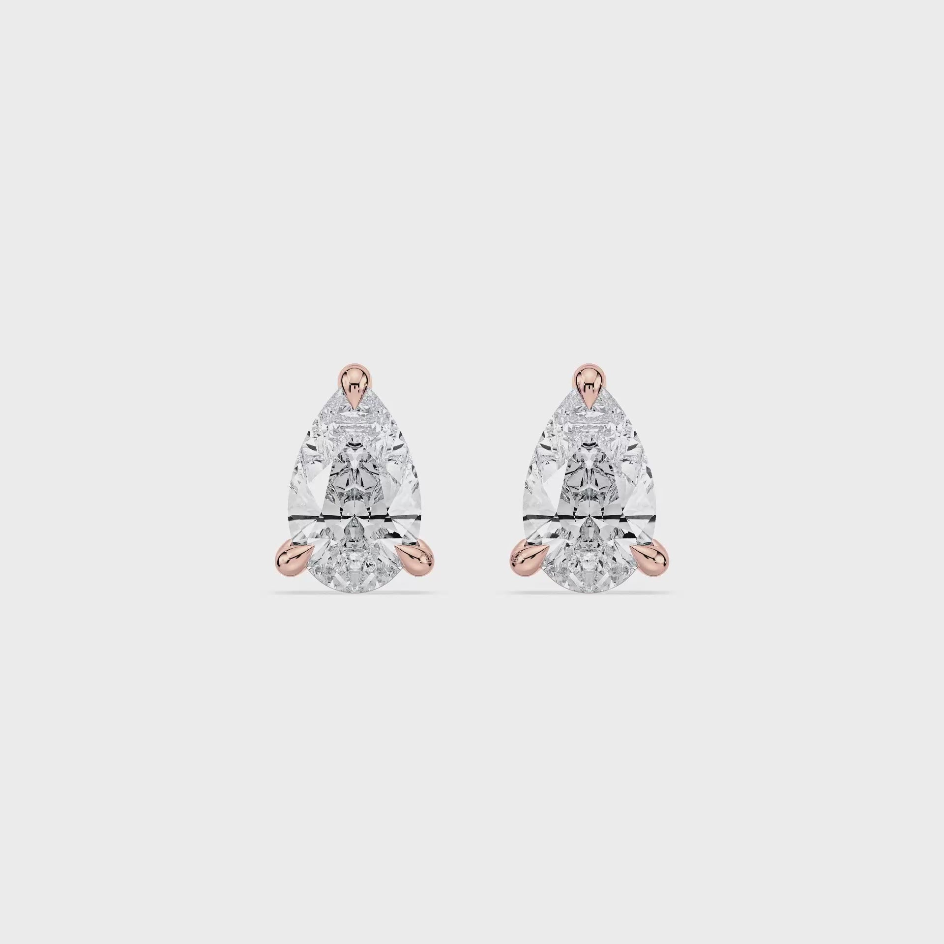18ct Rose GoldClassic diamond stud earrings featuring a pear shaped stone held in place by three elegant v-shaped claws. These studs are refined, simple and timeless in design and are available with push-back butterflies.