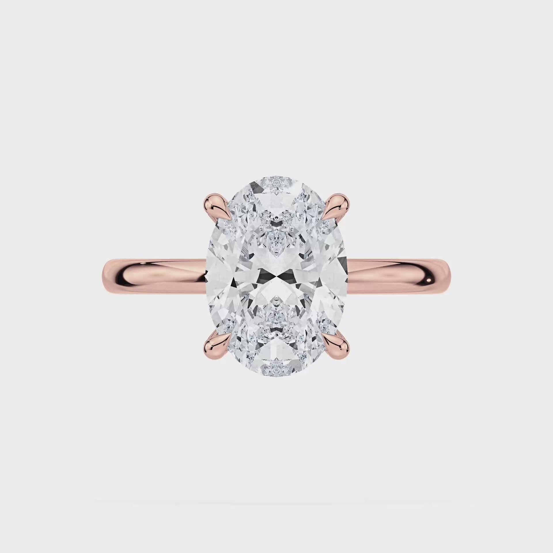 4-CLAW SOLITAIRE OVAL DIAMOND ENGAGEMENT RING WITH HIDDEN HALO in 18ct Rose Gold