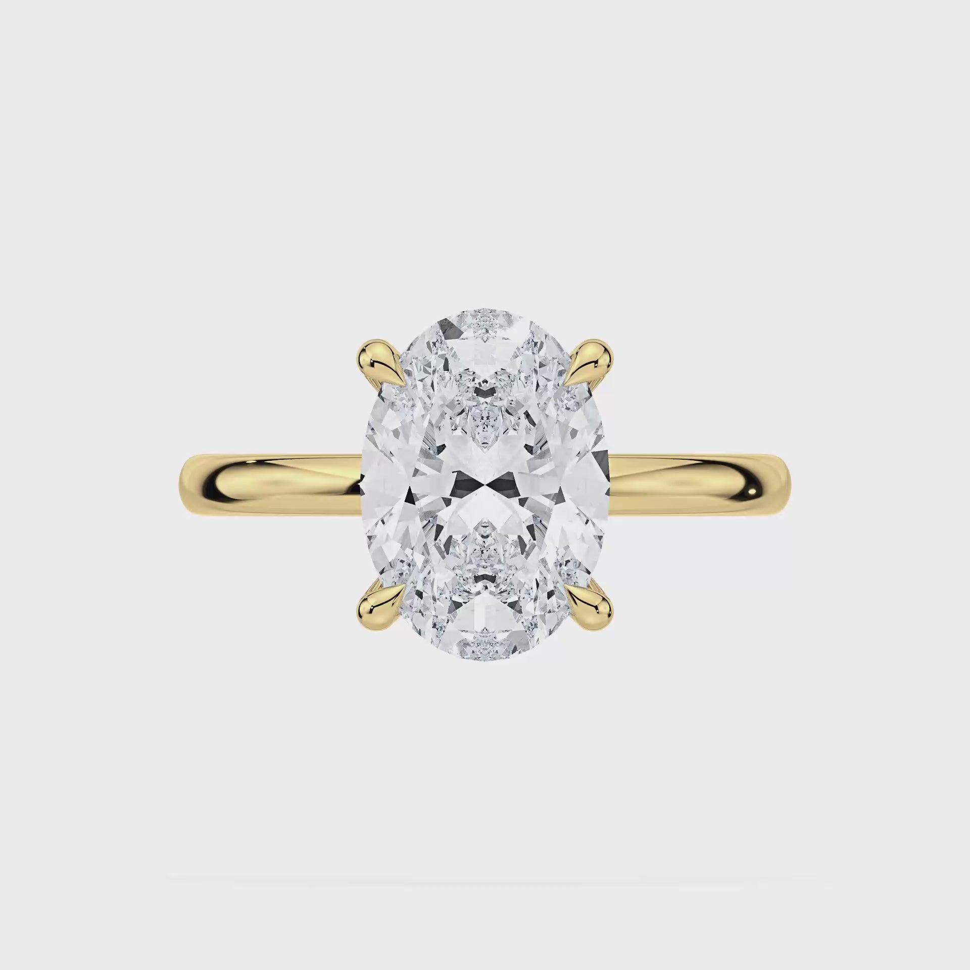 4-CLAW SOLITAIRE OVAL DIAMOND ENGAGEMENT RING WITH HIDDEN HALO in 18ct Yellow Gold