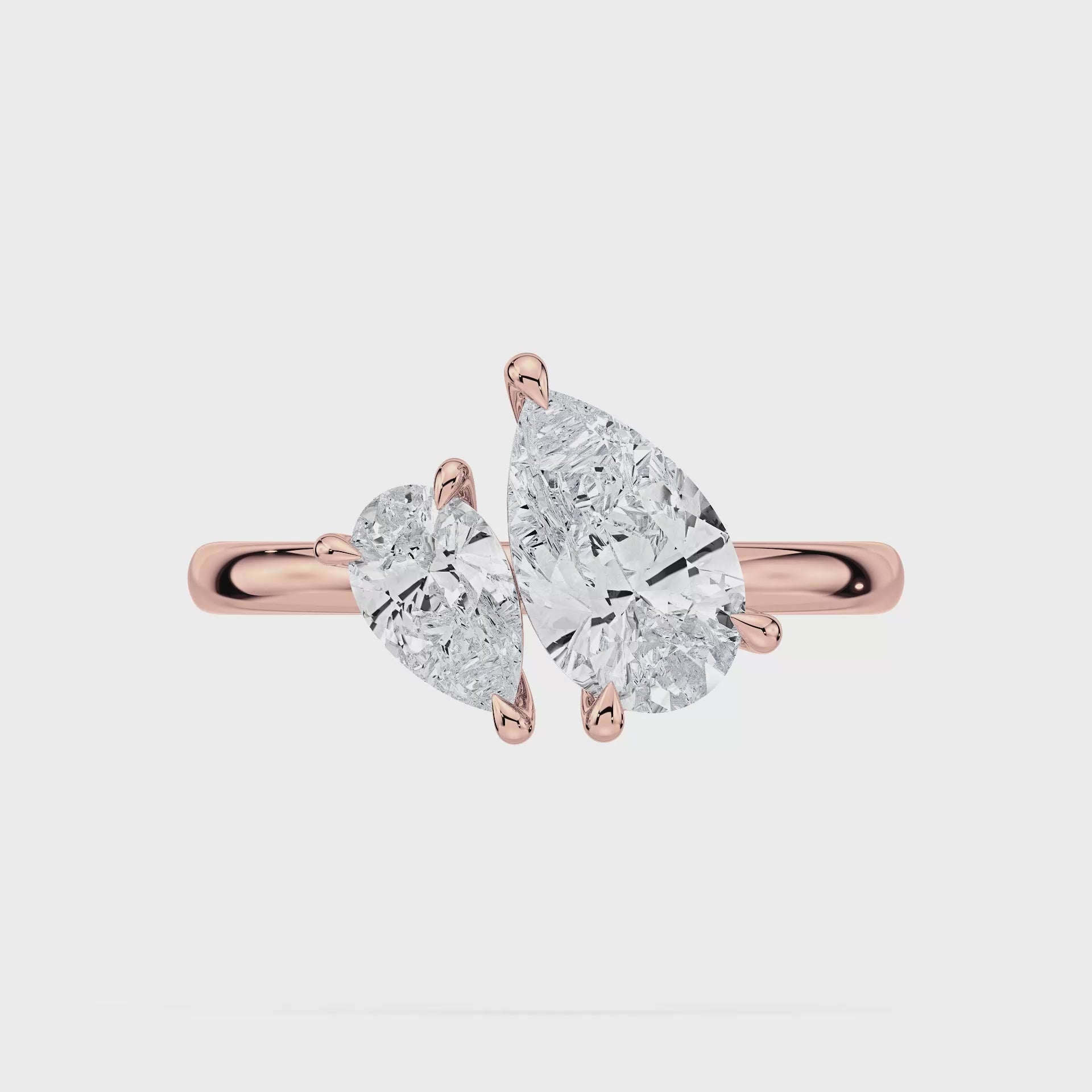4-CLAW TOI ET MOI PEAR-SHAPED DIAMOND ENGAGEMENT RING in 18ct Rose Gold