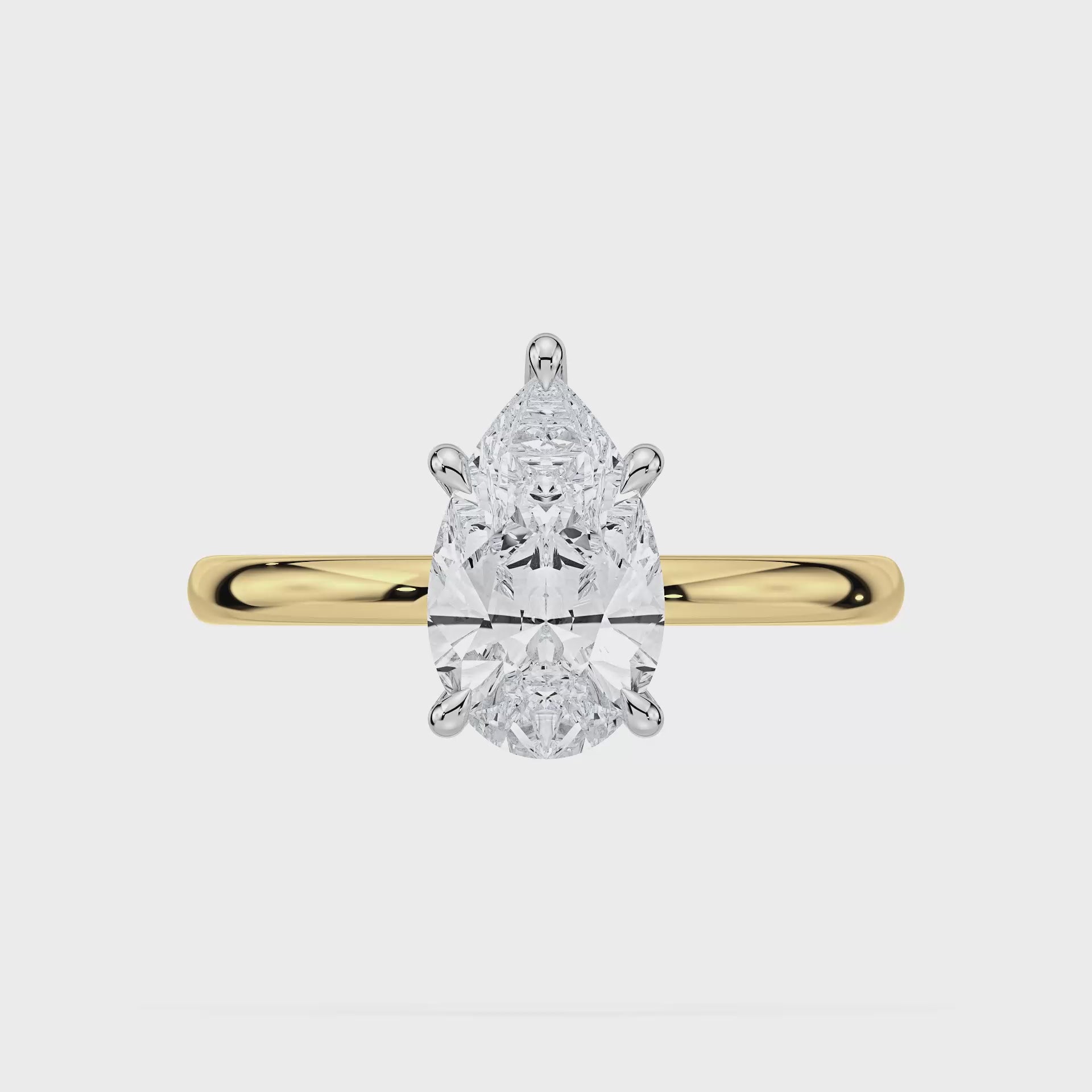 5-CLAW SOLITAIRE PEAR SHAPE DIAMOND ENGAGEMENT RING WITH HIDDEN HALO in 18ct Two Tone Gold