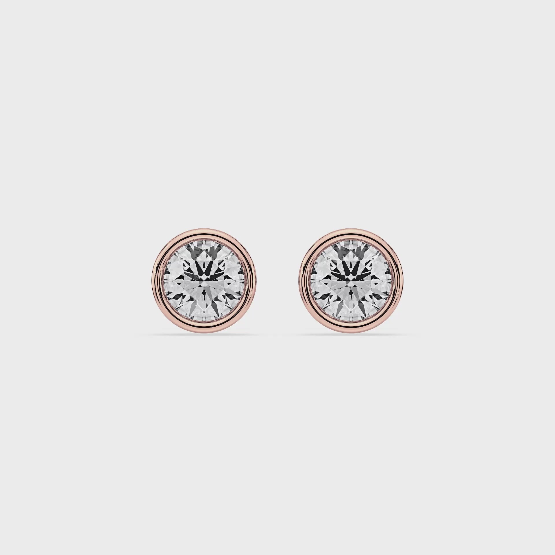 18ct Rose GoldClassic diamond stud earrings featuring a round stone held in place by a beautiful bezel. These studs are refined, simple and timeless in design and are available with push-back butterflies.