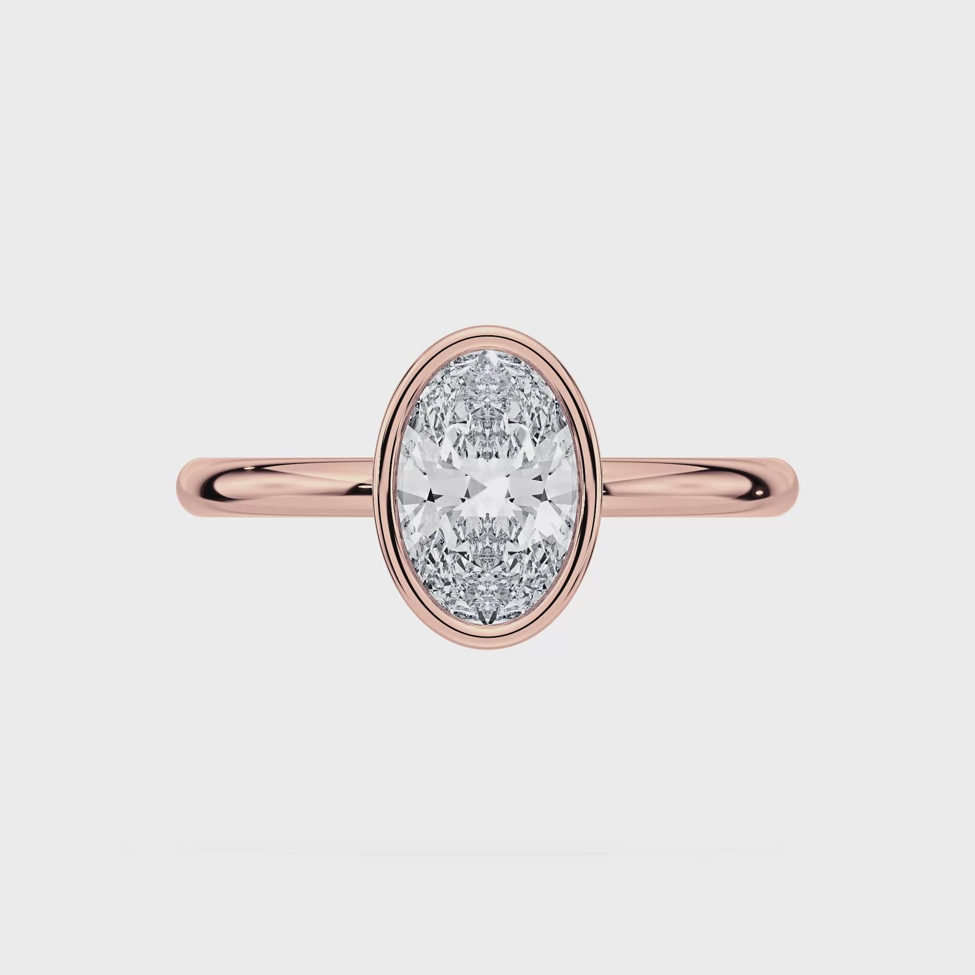BEZEL SET SOLITAIRE OVAL DIAMOND ENGAGEMENT RING in 18ct Rose Gold