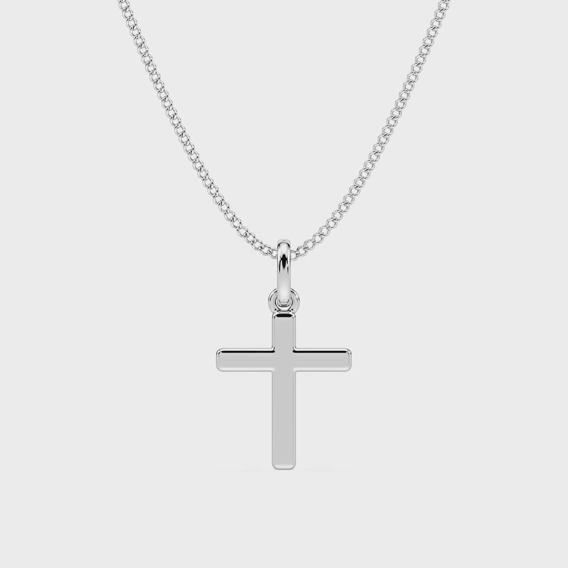 9ct White GoldA classic necklace featuring a gold cross pendant. The pendant has an elegant bail attaching it to a cable link chain. This pendant/necklace is refined, simple and timeless in design.